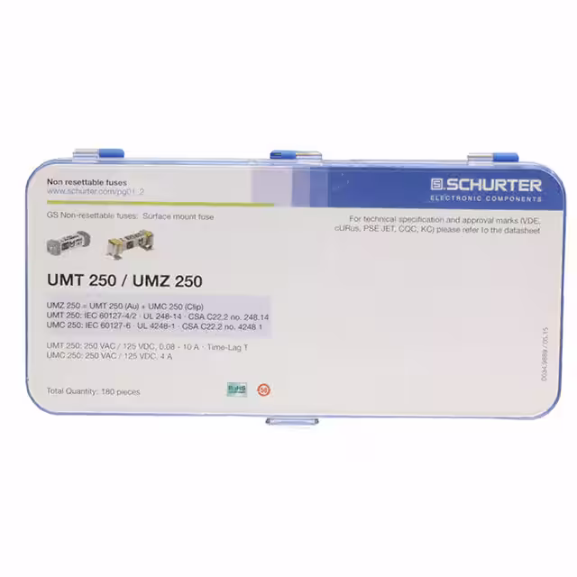 - | UMT 250, UMZ 250 | Active | Board Mount | Slow Blow | 250VAC, 125VDC | 0.08 ~ 10A | 180 Pieces (18 Values - 10 Each) | - | Surface Mount |