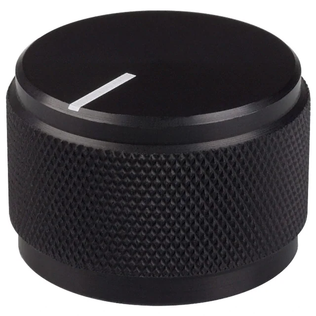Bulk | JD | Active | Cylindrical | Knurled, Straight | 0.250 (6.35mm) | 0.925 (23.50mm) | 0.625 (15.88mm) | Line on Top and Side | Metal | Black Gloss |